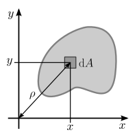 도심은 전체 "면적"과 "면적"의 1차 모멘트