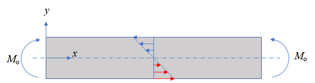 보에 순수 휨이 작용할 경우, 단면 내 깊이에 따른 응력 분포는 아래와 같다.