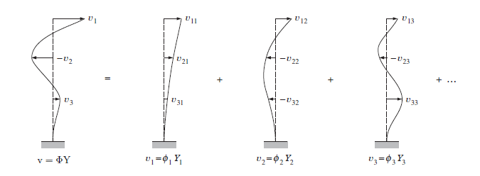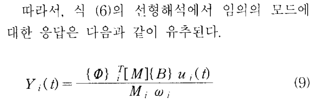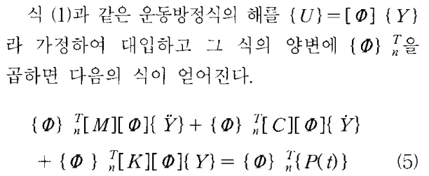 모드 중첩법은 구조물의 거동을 각 모드의 거 동으로 분리하여 모든 모드에서의 응답을 전부 중첩시킴으로써 이 론상 정확한 응답의 시간이력을 구하는 방법이다.