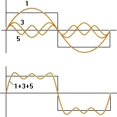 이 근사해를 적절히 가중치(Factor)를 적용하여 합산을 하면, "1+3+5" 로 표시된 그림과 같은 근사해를 얻게 된다.