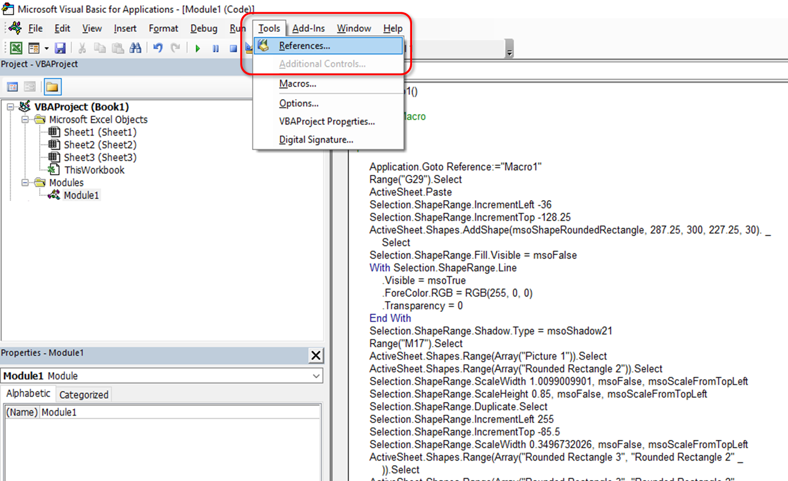♣ Excel Macro 편집기를 실행하고, "도구(Tools)" ≫ "참조(References..)" 선택한다.