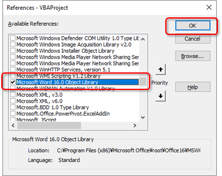 Excel VBA를 이용하여 MSWord를 제어하기 위해서, 우선 MSword dll 를 추가해야한다.