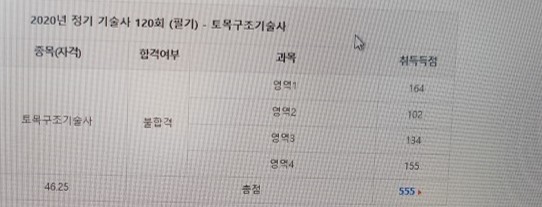 토목구조기술사가 평균 60점을 얻으면 되기때문에, 시험과목 1~4교시에서 적당히(?) 평균 이상만 받으면 합격할 것이라고 생각하고, 적당히 준비했었다. 그래서 그랬던 것인지 시험을 보게되면 늘 시험 결과가 평균 40점대에 머물러 있었다.