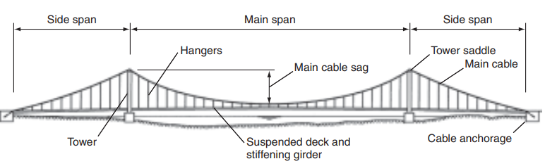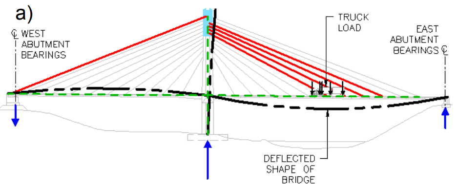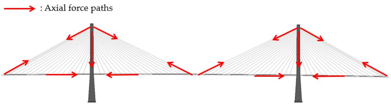 주경간에 재하된 하중은 주경간 케이블로부터 측경간 케이블로 전달되어 단부 교각으로 전달된다.