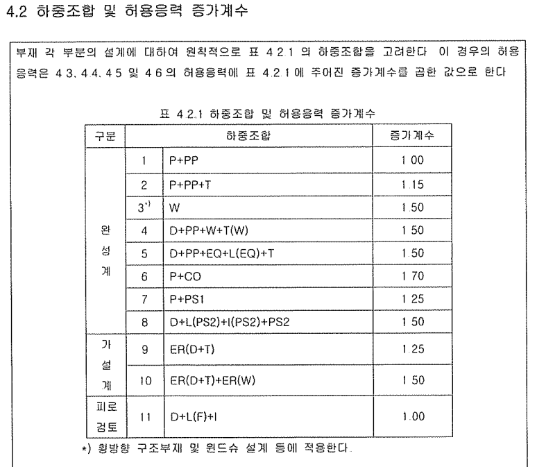 (케이블 강교량설계지침(2006) 4.2 하중조합)
