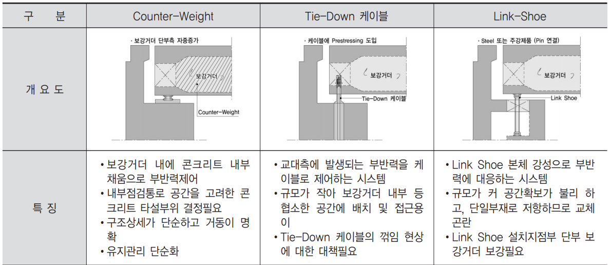 : 거더와 교대에 Link Shoe를 설치하여 부반력 저항