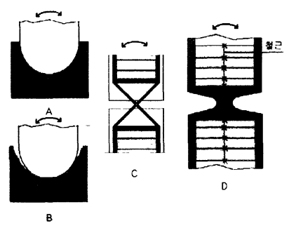 - 콘크리트 힌지 (슬라이딩힌지 - A, 새들받침 - B, 메나제 힌지 - C, 프레시넷 힌지 - D)