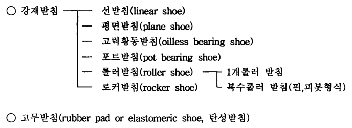 - 교랴에 재하되는 하중을 상부구조에서 하부구조로 전달하는 기능 수행
