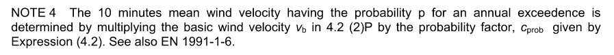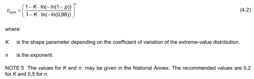 그런데, Eurocode를 참고하면, 아래와 같이 초과확률, p일때의 평균풍속은 계수 Cprob를 적용하여 산정할 수 있도록 규정하였다.