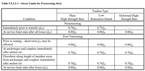 - 5.9.2.2 Stress Limitations for Prestressing Steel -