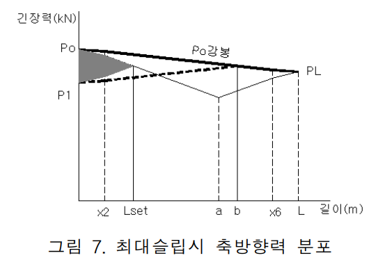 : 위 내용은 프리스트레싱 도입 직후 웻지 슬립으로 인해 정착구에서의 응력 손실을 고려한 내용