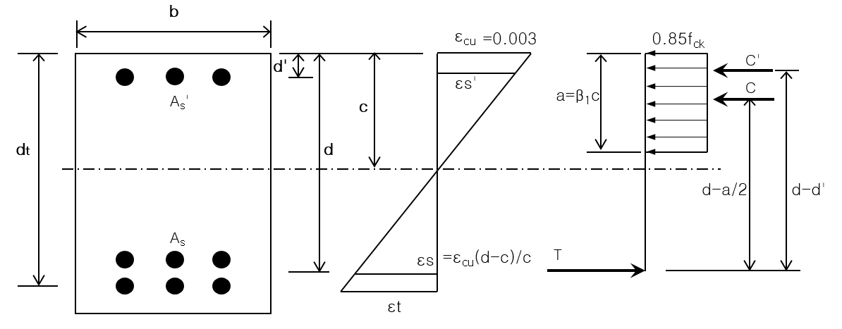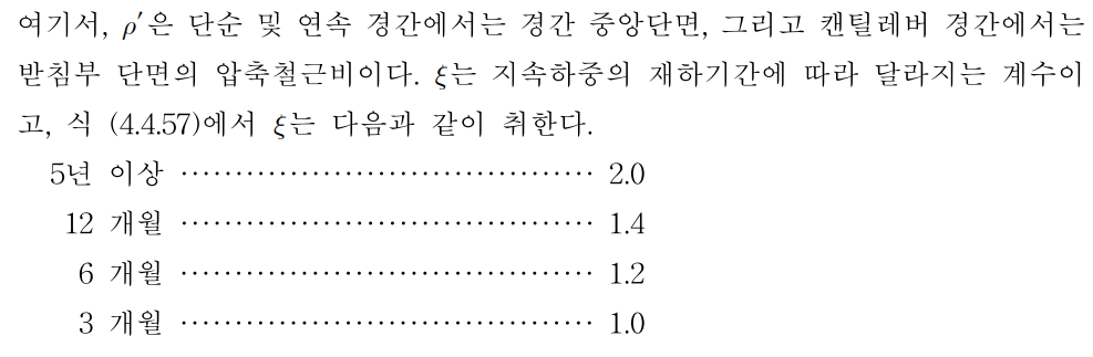 그러나, 압축철근 사용시 콘크리트가 받는 압축응력이 감소되는 효과가 있으므로,
