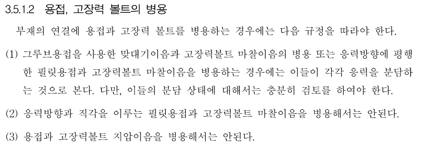 (2) 응력방향과 직각을 이루는 필렛용접과 고장력볼트 마찰이음을 병용해서는 안된다.